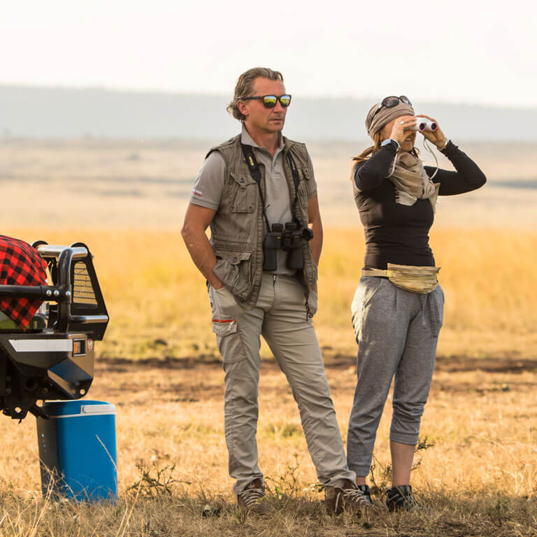 In order to make this trip unforgettable, private planes will take us from lodge to lodge. We will also be served the most delicious culinary delights in the two luxury camps we selected for our stay. Food and drinks (also alcohol), game drives as well as other activities are included in the price. Our first camp, the “Little Governors”, is located directly at the scenic Mara River in the heart of the Masai Mara. There are few places in the world where you can see as much wildlife as here. The luxurious tents are right next to a lagoon, which enables us to observe the animals at a close range. Jochen Zeitz owns the second luxury lodge, which we will have exclusively to ourselves. Apart from exhilarating game drives there are many other opportunities to make the day a varied one – let us surprise you!