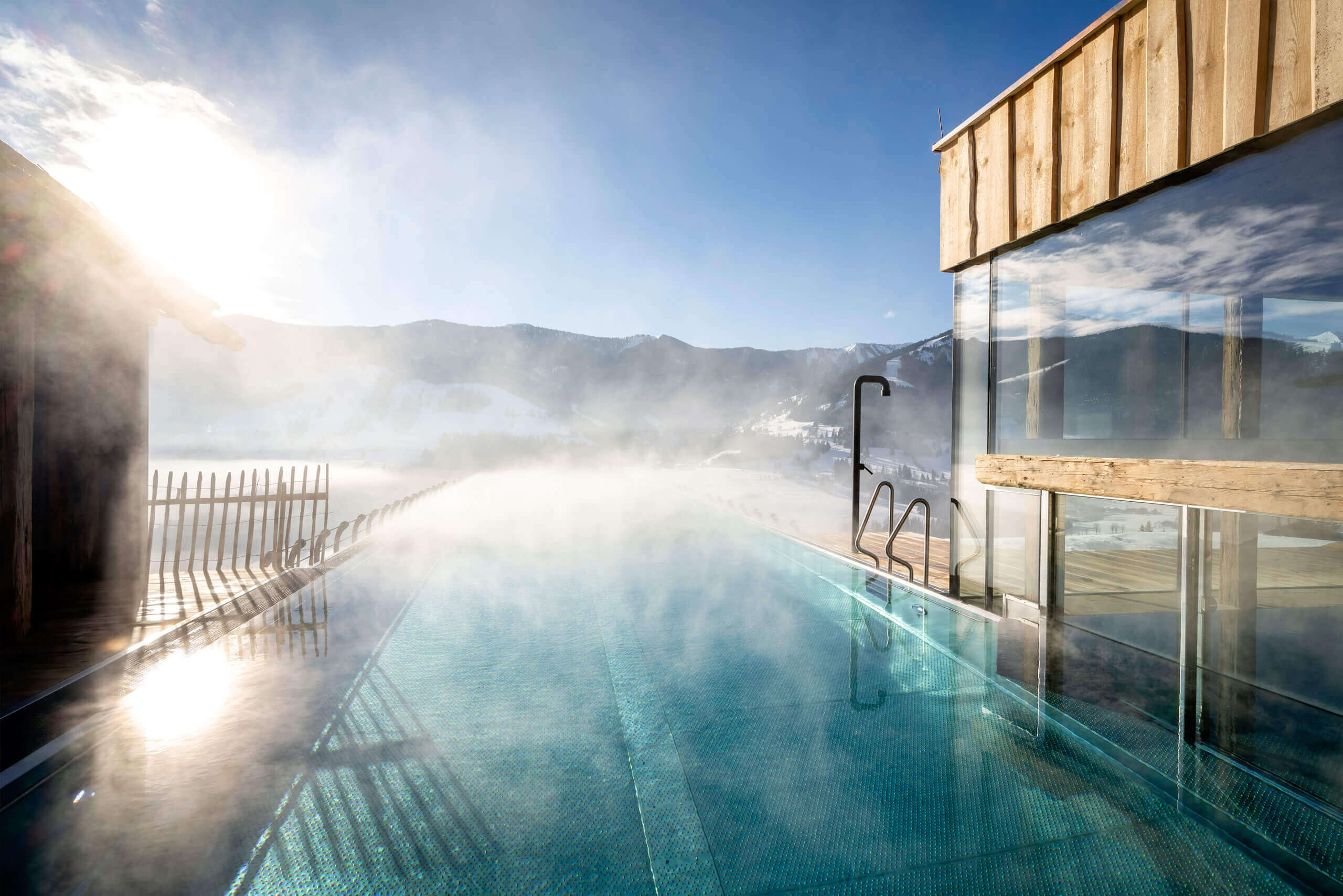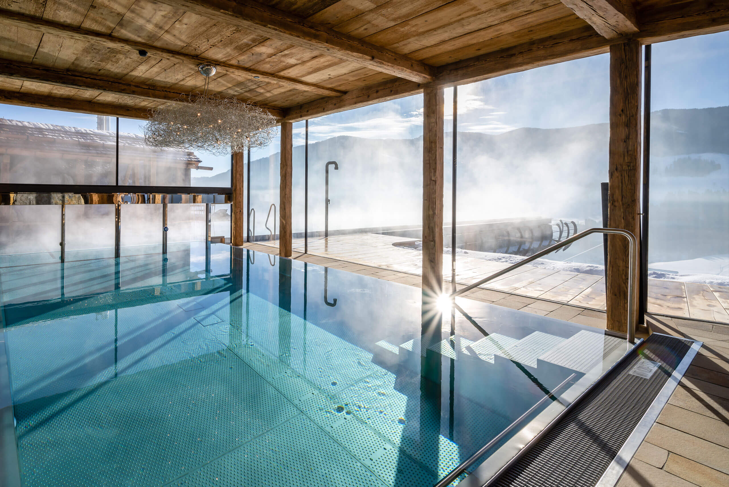 Water is the world’s most valuable resource and an important part of the PRIESTEREGG. One of the reasons is that the crystal clear Birnback river provides the whole Bergdorf with high quality drinking water. However, this precious commodity is not only used for drinking; it is also an integral part of the treatments offered in the PRIESTEREGG BAD. If used wisely, it strengthens the immune system and stimulates the metabolism. It activates the blood circulation, loosens tensions and strengthens the muscular system. You can either enjoy it whilst doing your lengths in the heated Infinity or Nature Pool or whilst receiving a haki®-Flow treatment, during which you can just let yourself go and drift in our warm pool by the fireplace.